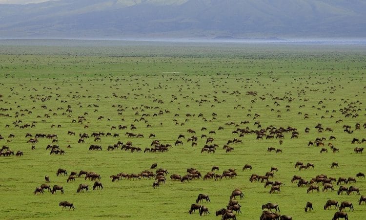 OverviewEnquireOverview Ngorongoro is the world’s largest inactive, intact and unfilled volcanic caldera, and the name is derived from the sound of cowbell (Goro Goro) by the Maasai pastoralists. The crater walls stretch about 2,000 feet up and its floor covers about 260 sq km. The Ngorongoro conservation area is host to a variety of wildlife